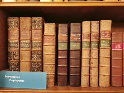 Harris' work also served as a model for other highly acclaimed later European encyclopaedias: Ephraim Chambers' Cyclopaedia (1728, England) and Denis Diderot and Jean le Rond d'Alembert's Encyclopédie (1751–1780, France), both of which, incidentally, can also be found in the Iron Library's collection.
